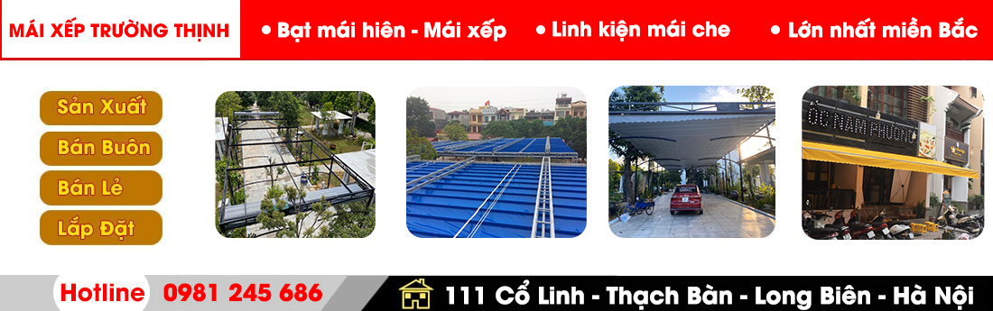 Chúng tôi tự hào là một trong những công ty tiên phong, và dịch vụ hàng đầu trong lĩnh vực: mái hiên di động, mái che di động, mái xếp di động, mái sóng xếp, mái xếp lượn sóng,mái hiên, mái xếp, mái vòm, bạt che nắng mưa chất lượng giá rẻ…với chất liệu, chịu nắng mưa tốt. Mái xếp di động là sản phẩm Phổ thông nhất của các dòng mái che hiện nay.